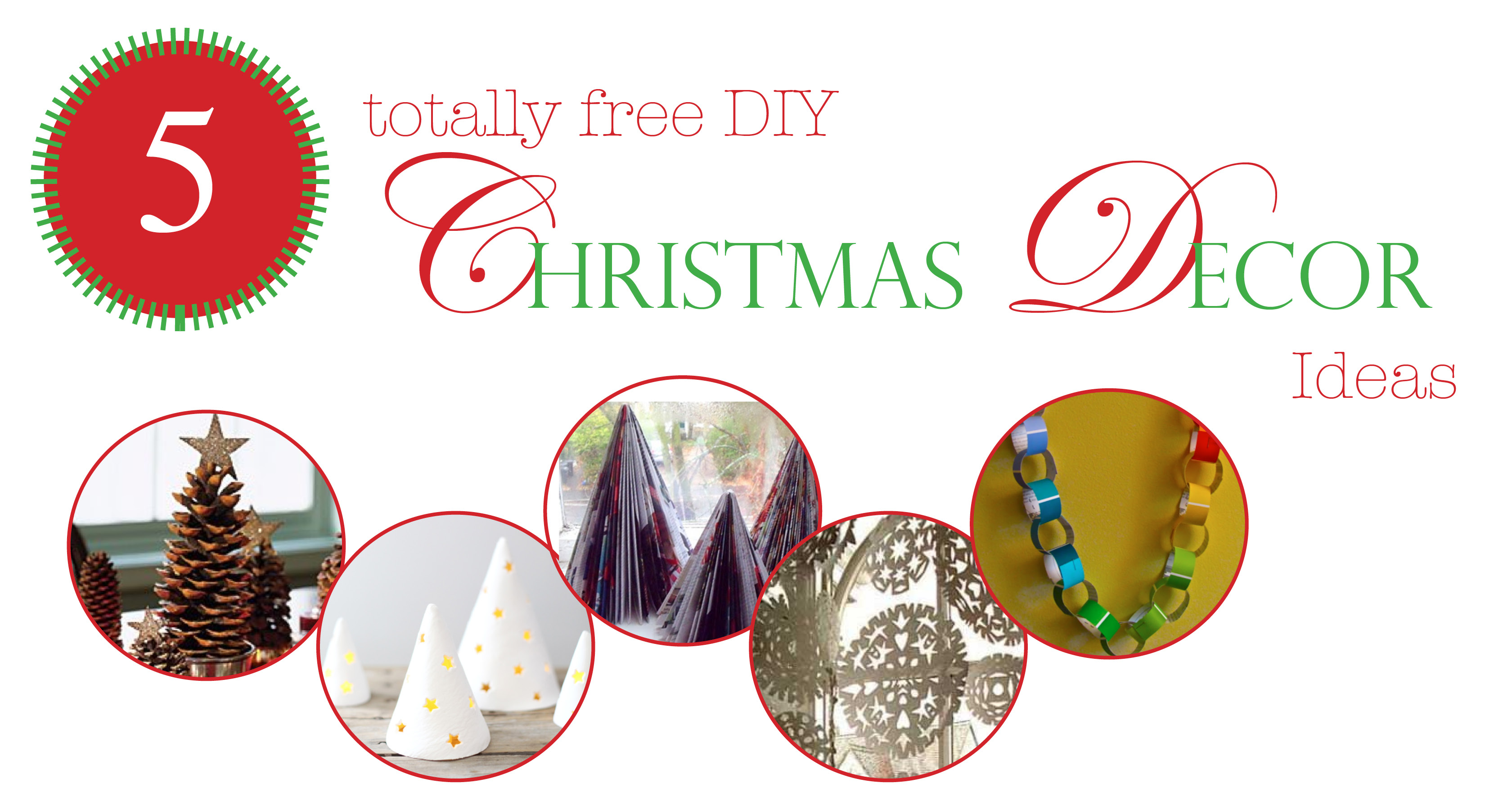 5) Good ole’ Garland: Last but not least, you can’t really go wrong with some lovely, simple, colorful garland to hang on the tree or to deck your halls. The ones above were done with paint sample swatches, but the possibilities are endless of what you could use. Get thrifty! You can even make an advent garland where you take off one loop each day leading up to Christmas.